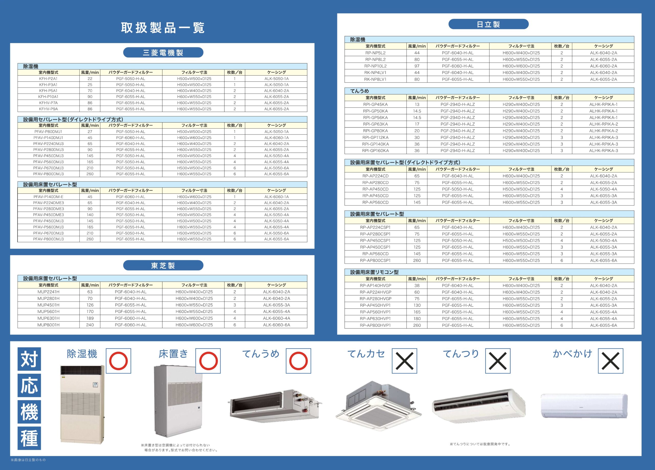 対応機種と取扱製品一覧